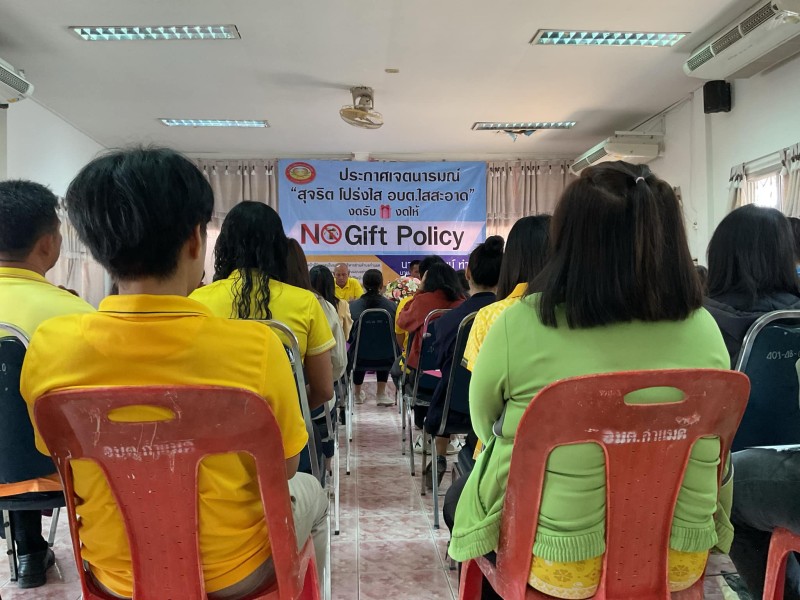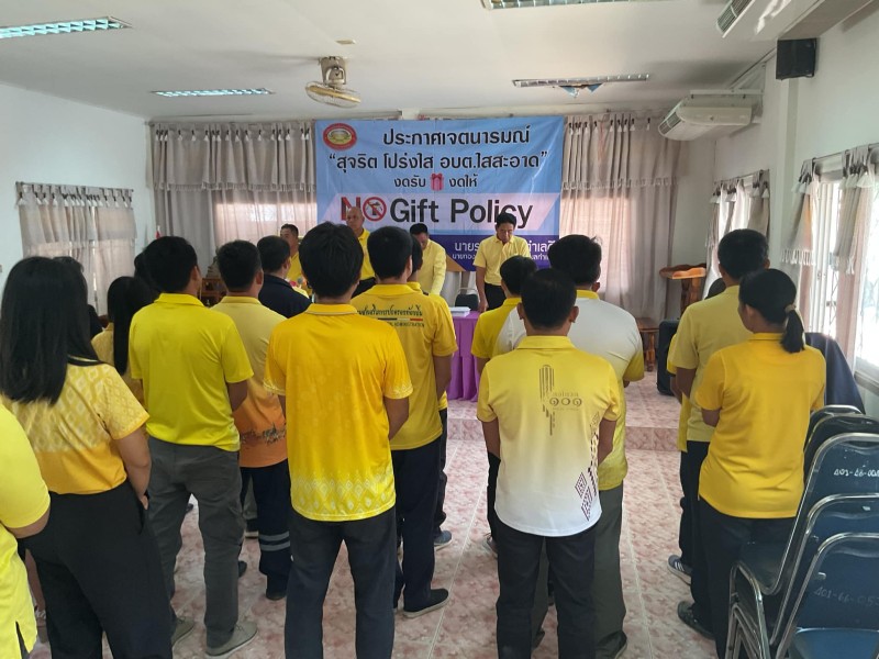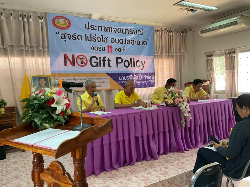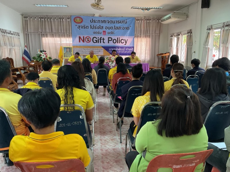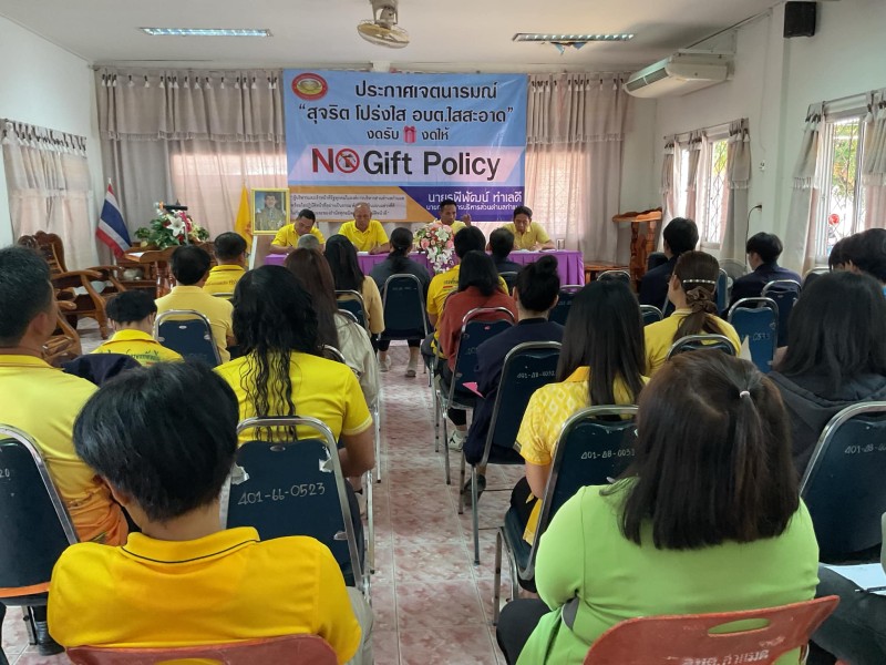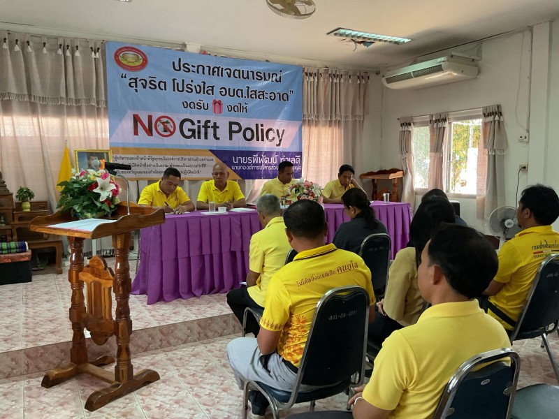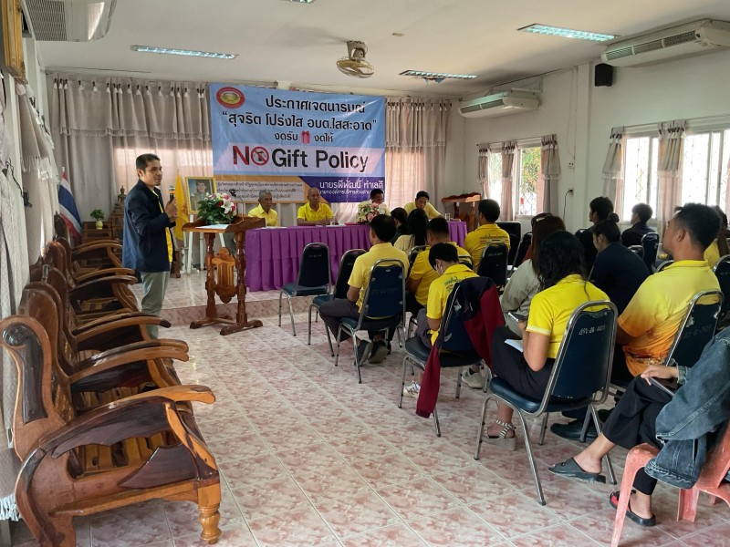 หัวข้อ :: กิจกรรมนายองค์การบริหารส่วนตำบลกำแมดมอบนโยบายไม่รับของขวัญและของกำนัลทุกชนิดจากการปฏิบัติหน้าที่ (No Gift Policy)